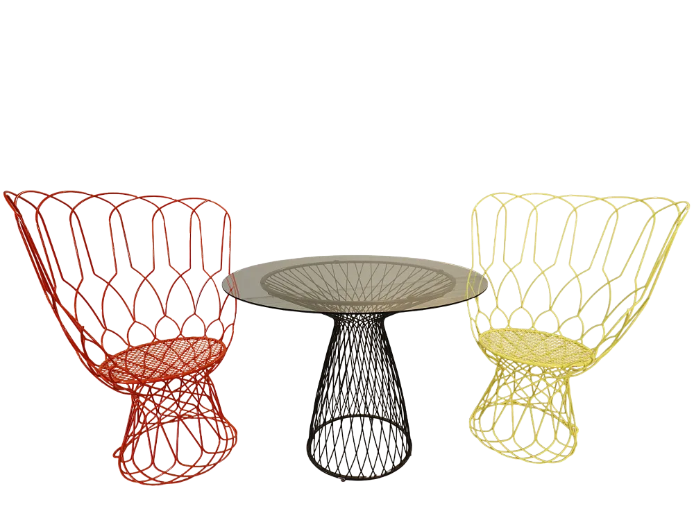 Discover the allure of Italian design with the Re-trouvé Collection by Patricia Urquiola. Crafted in Italy with meticulous attention to detail, this collection balances bold color with refined lines. The vibrant yellow and orange armchairs bring warmth and style, while the black table provides a timeless contrast, creating a statement piece for any space. Made to last, each piece blends artisanal craftsmanship with modern durability, inviting you to enjoy moments of relaxation in comfort and elegance.