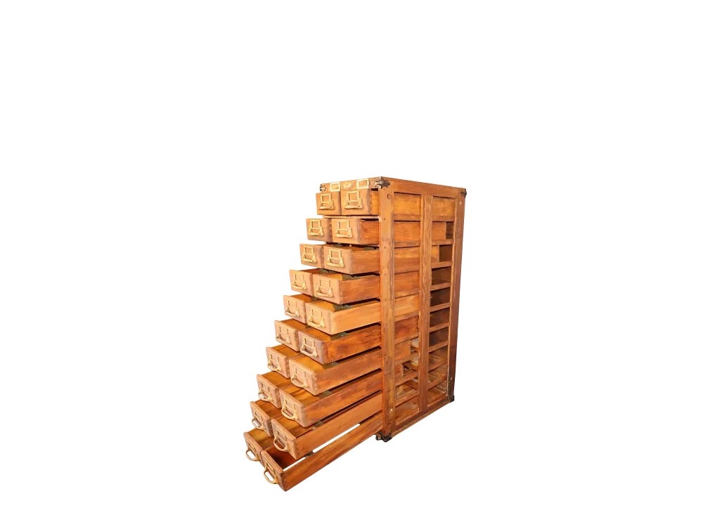 Functional Elegance: Features a series of deep, accessible drawers for all your cataloging needs, whether for documents, files, or collectibles.