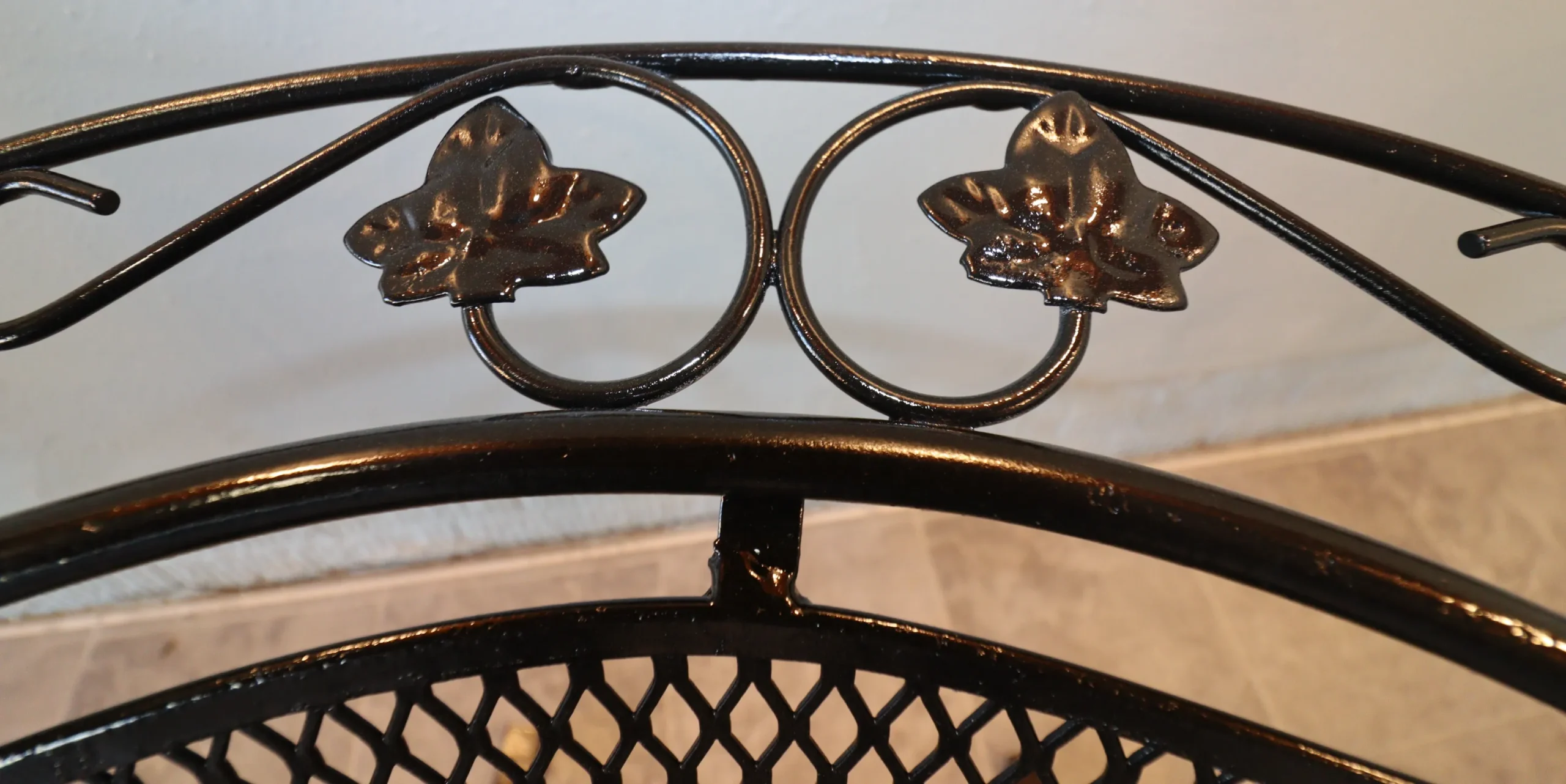 The design falls squarely within Woodard’s mid-century production, where traditional garden ornament meets clean, engineered lines. The ivy motif adds depth without crowding the silhouette; from a distance the chairs read crisp and architectural, while the detailing comes forward up close.